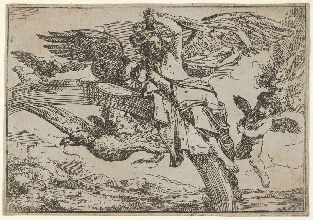 Air, represented by Iris reclining on her rainbow, accompanied by a winged putto bearing a torch and another winged putto riding an eagle, from "The Elements"