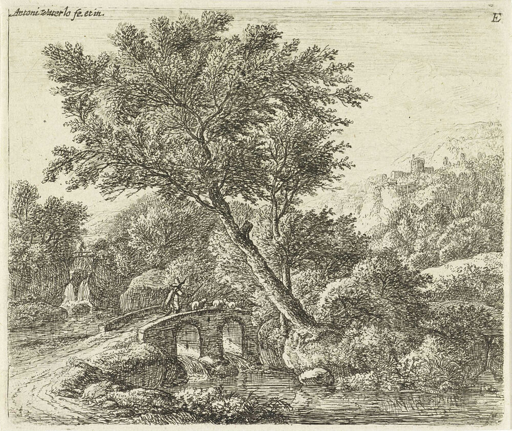 Herder op een stenen brug