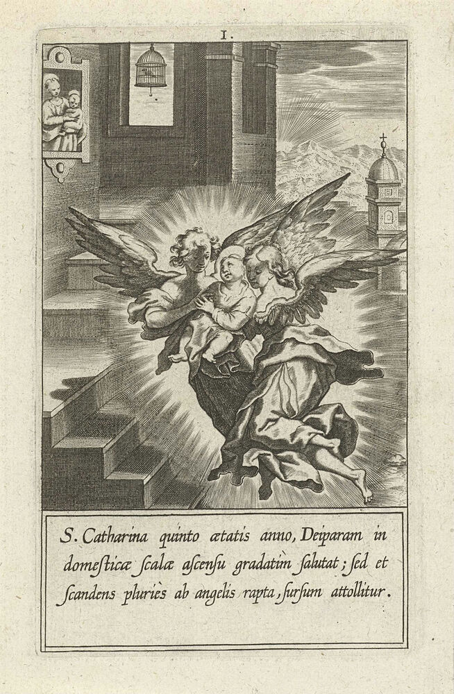 Catharina wordt door twee engelen de trap opgedragen