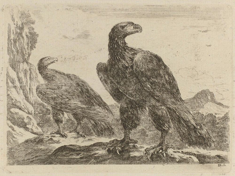 Two Eagles, Both with Heads Turned to the Right
