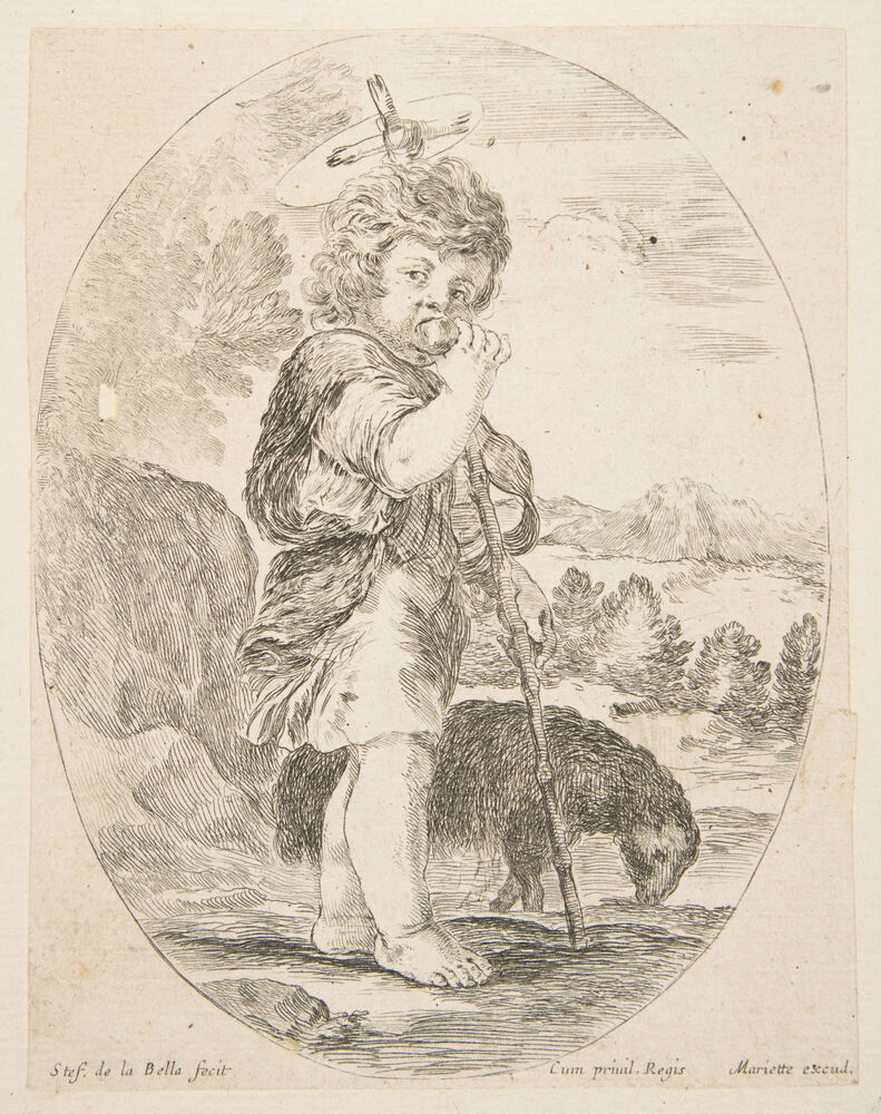 Saint John the Baptist eating a piece of fruit, an oval composition