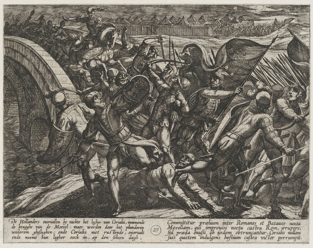 Plate 27: The Dutch During a Surprise Attack of the Roman Camp on the Moselle, from The War of the Romans Against the Batavians (Romanorvm et Batavorvm societas)