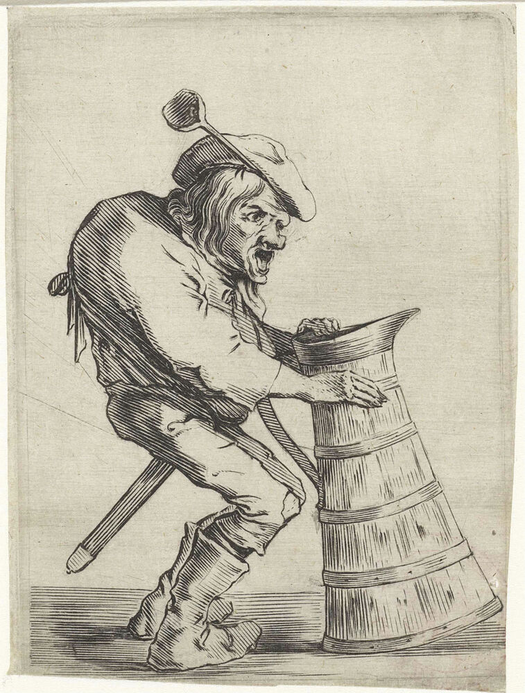 Gebochelde man met schenkkan