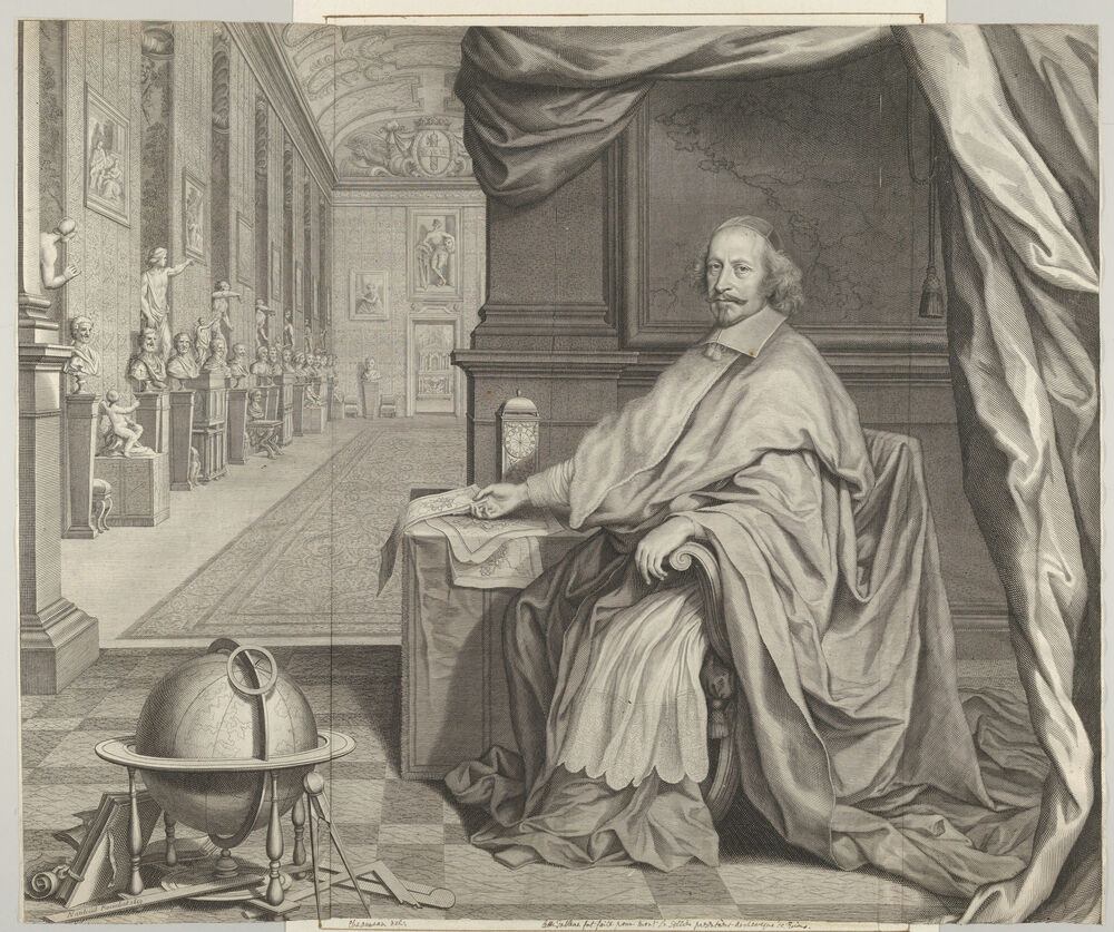 Cardinal Jules Mazarin Seated Within the Gallery of his Palace