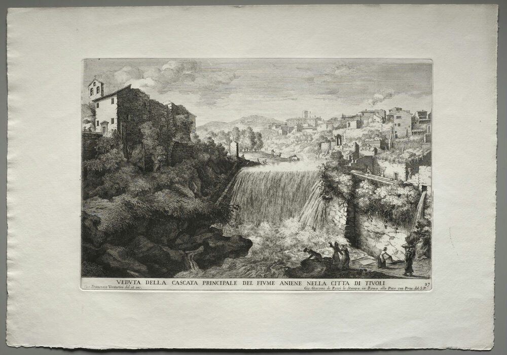 The Fountains of Rome (Le fontane di Roma), Book IV, plate 27: View of the Principal Cascade of the River Aniene in the City of Tivoli (Veduta della Cascata Principale del Fiume Aniene nelle citta di Tivoli)