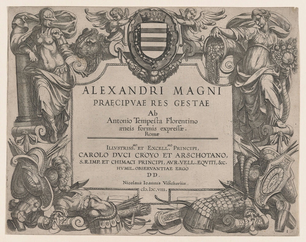 https://artsandculture.google.com/asset/frontispiece-to-the-life-of-alexander-the-great-at-left-is-bellona-and-at-right-a-female-personification-of-abundance-the-coat-of-arms-of-the-duke-of-croy-antonio-tempesta-claes-jansz-visscher/UwECrApI-c7Lyw
