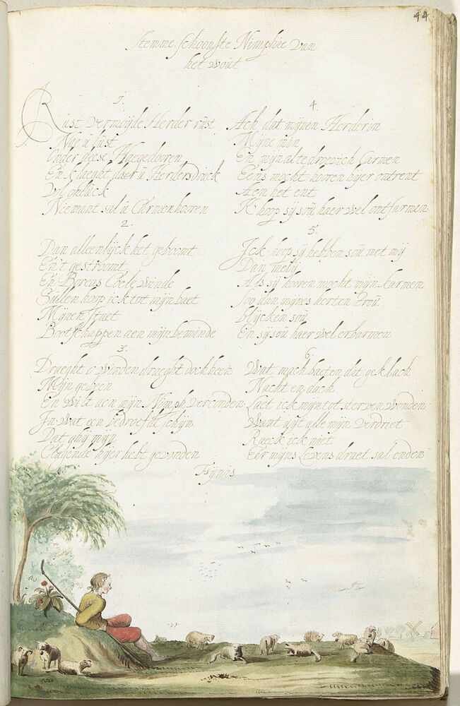 Herder op een heuveltje, kijkend naar zijn schapen