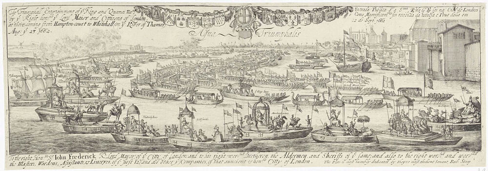 Triomftocht op het water bij de aankomst te Londen van koning Karel II en koningin Catharina van Braganza