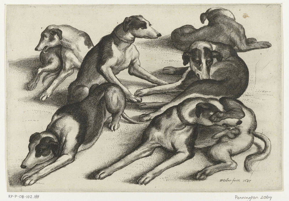 Zes liggende jachthonden