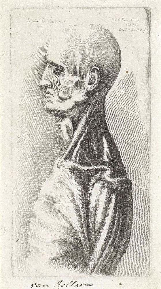 Anatomische studie van hoofd en schouders van een man, ontleed
