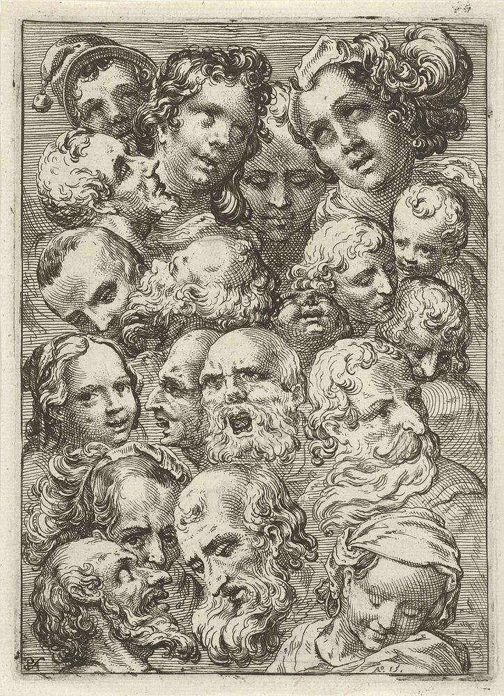 Studieblad met negentien hoofden