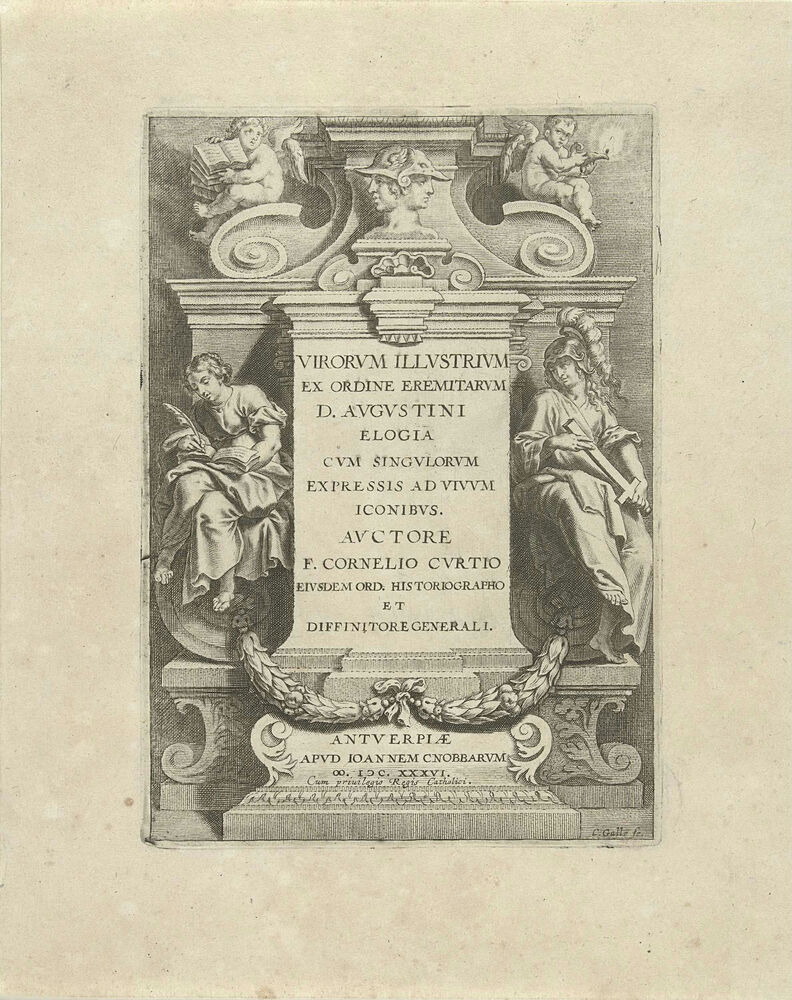 Titelpagina voor: Cornelius Curtius, Virorum illustrium ex ordine Eremitarum D. Augustini elogia , Antwerpen: 1636
