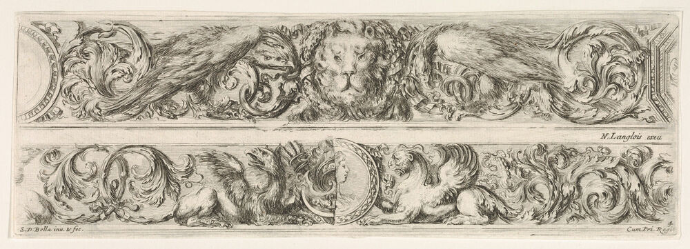 Two Designs for Friezes with Acanthus Scrolls, Each with a Variant, Plate 4 from: 'Decorative friezes and foliage' (Ornamenti di fregi e fogliami)