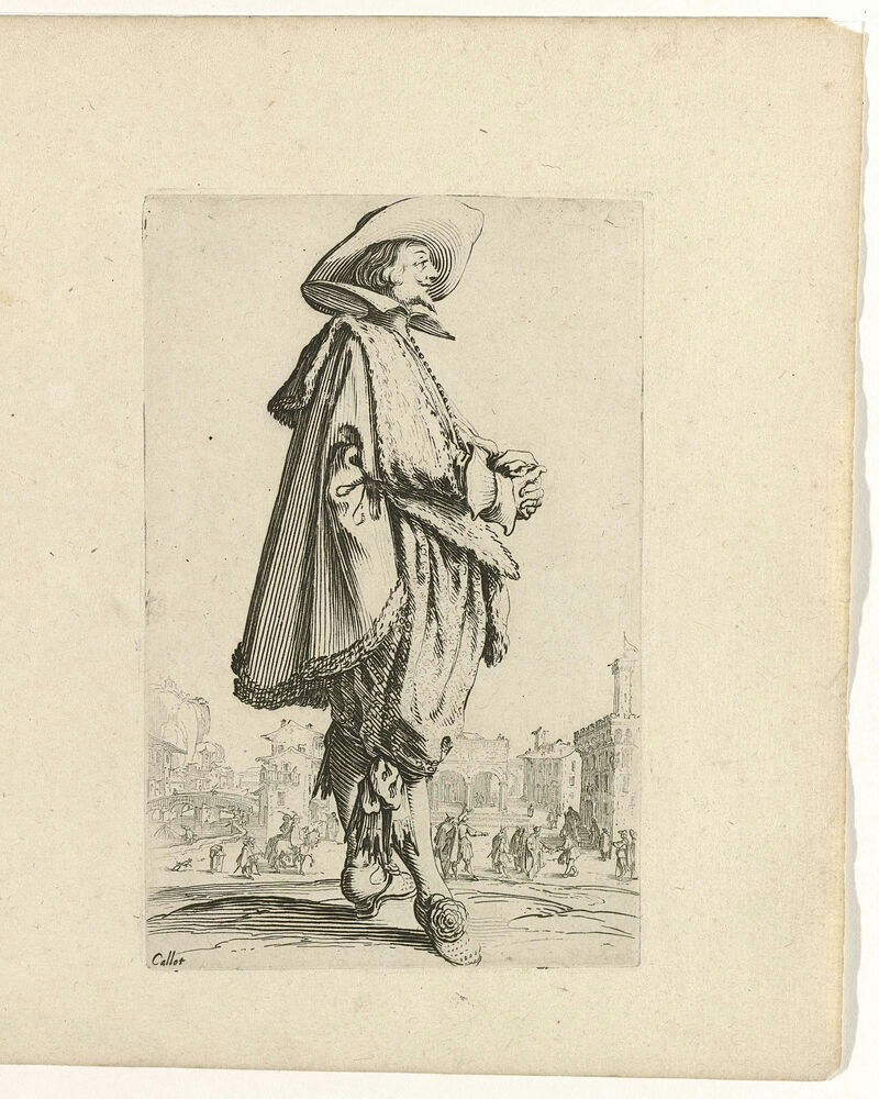Edelman met hoed, de handen gevouwen, naar rechts