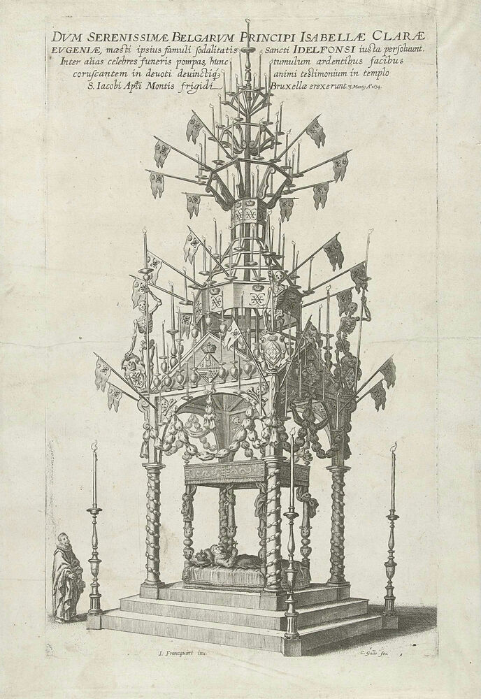 Katafalk met het lichaam van aartshertogin Isabella Clara Eugenia, 3. maart 1634