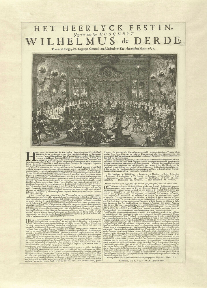 Feestmaal door Willem III op 1 maart 1672 gegeven ter ere van zijn benoeming tot kapitein-generaal