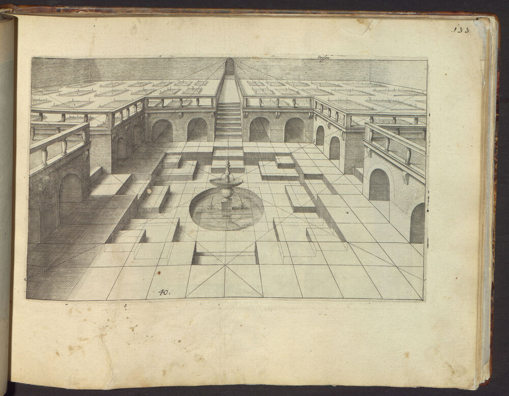 Courtyard with fountain. Tasks from “Perspective” print 40, pg. 46a