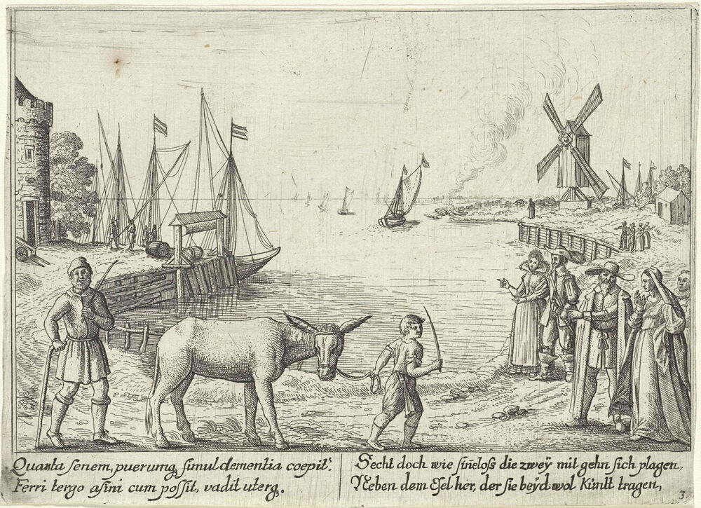 Fabel van de boer en zijn ezel; Zowel de boer als zijn zoon lopen