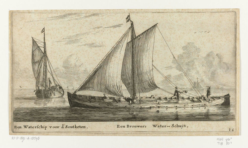 Twee schepen: een waterschip en een waterschuit