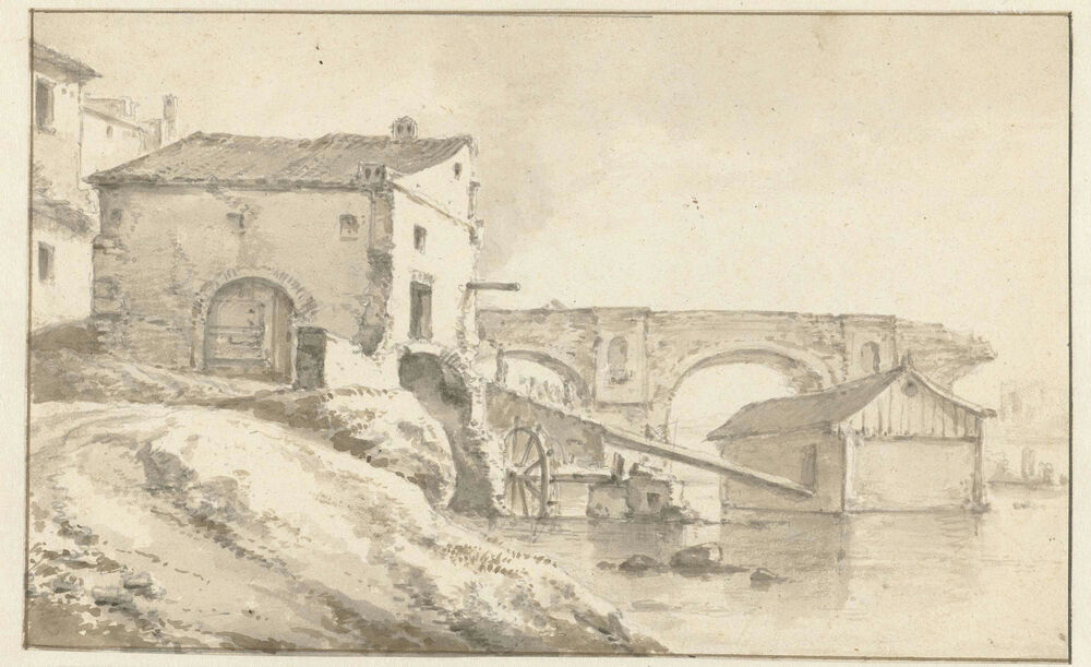 Watermolen bij een ingestorte brug