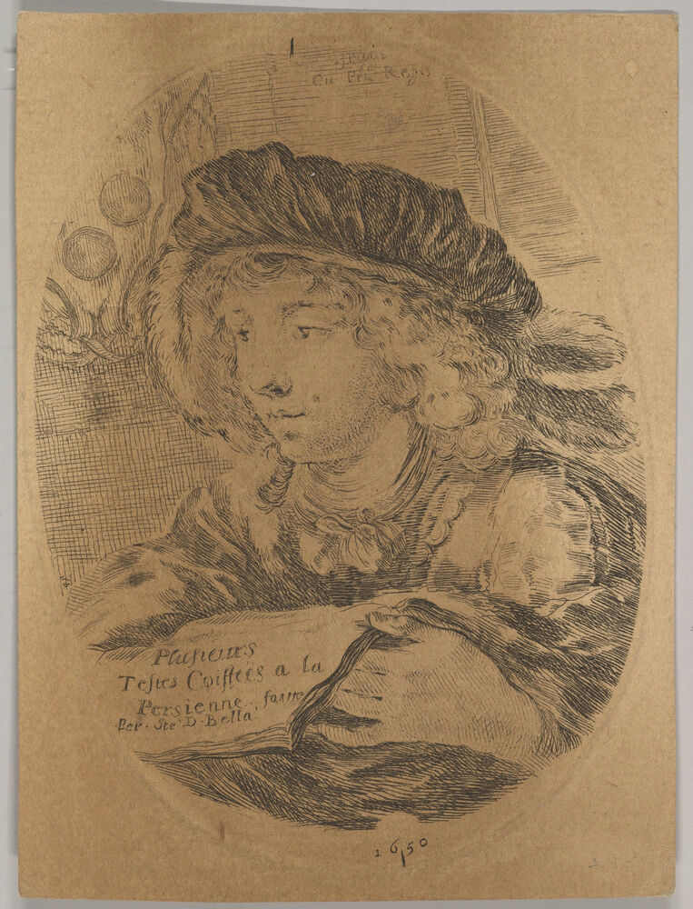 A bust of a young man wearing a cap with feathers, turned three-quarters to the left, the coat of arms of the Grand Duke of Tuscany in top left, title page from 'Several heads in the Persian style' (Plusieurs têtes coiffées à la persienne)