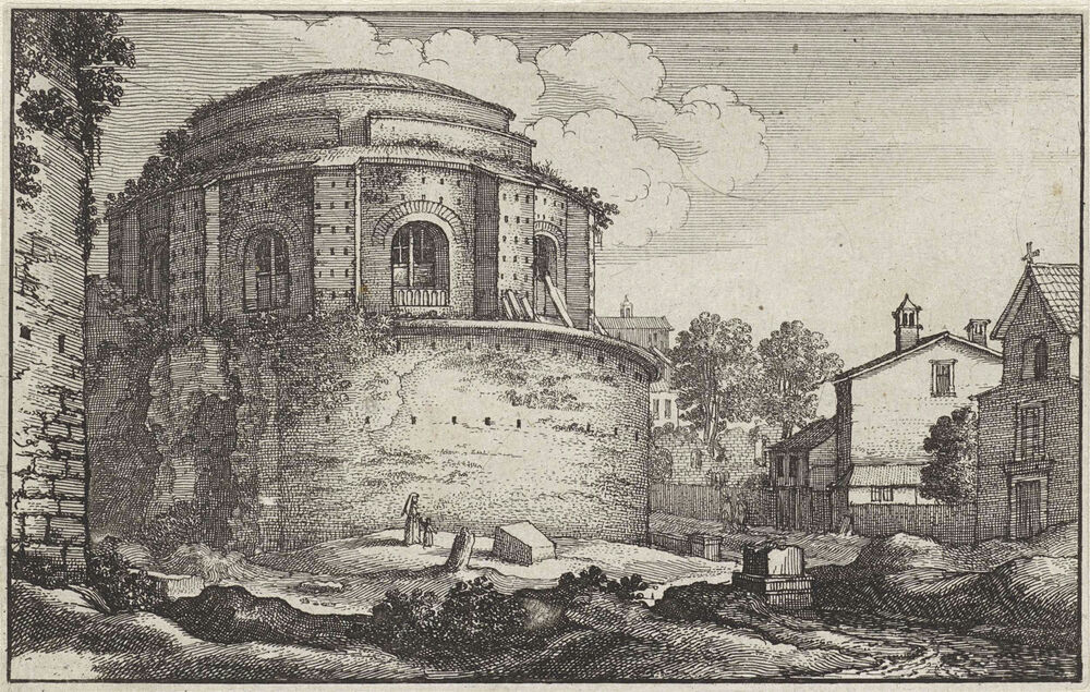 Gezicht op een rond Romeins gebouw