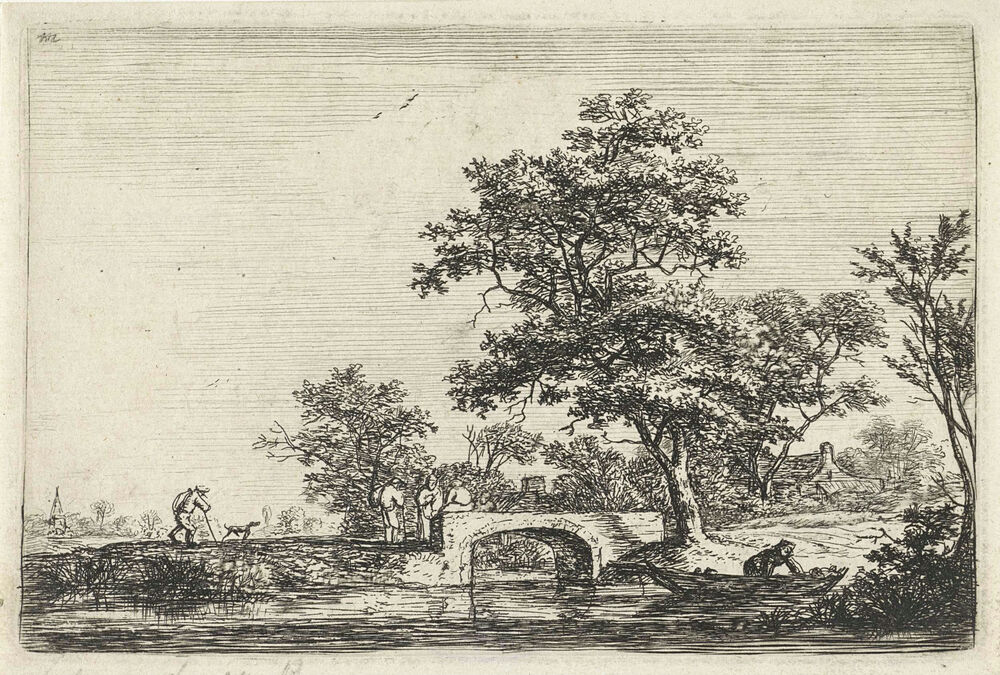 Figuren bij een stenen brug