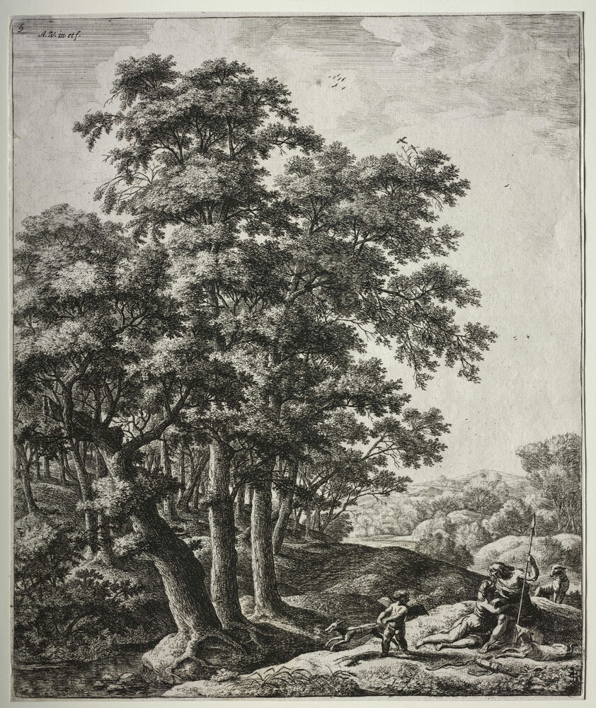 Six large upright landscapes with scenes from Ovid's Metamorphoses: Venus and Adonis