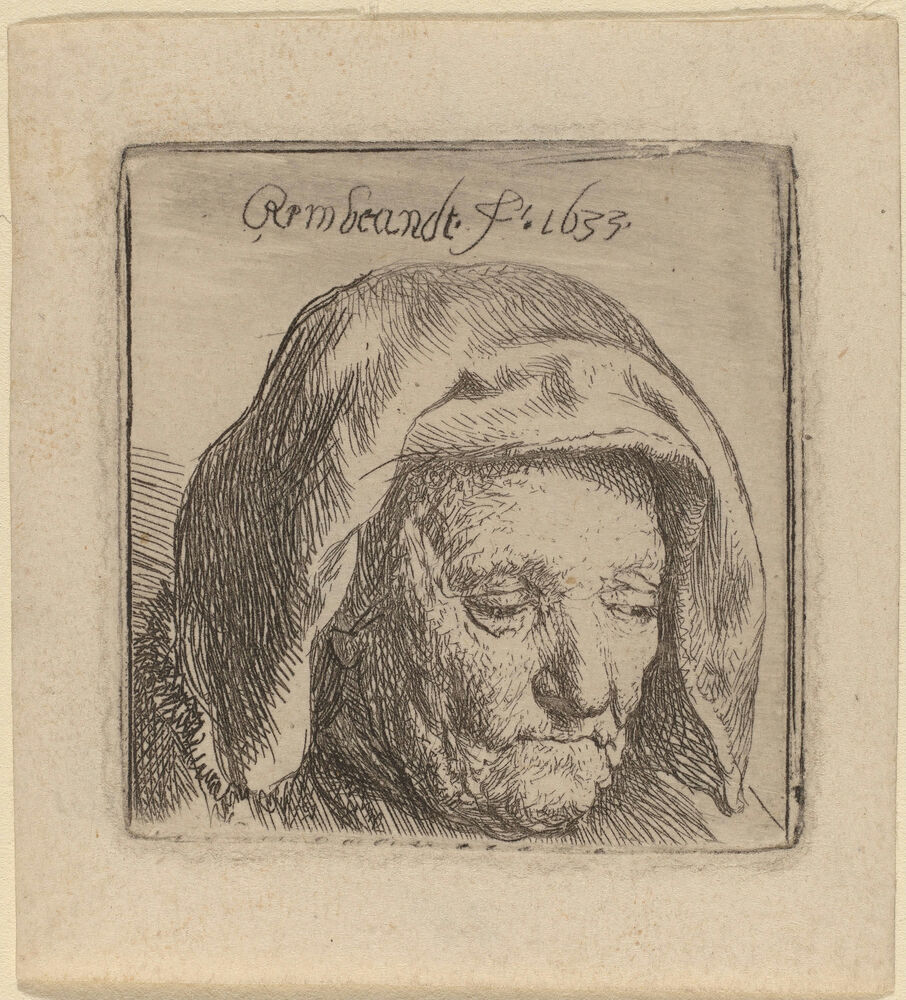 The Artist's Mother in a Cloth Headdress, Looking Down