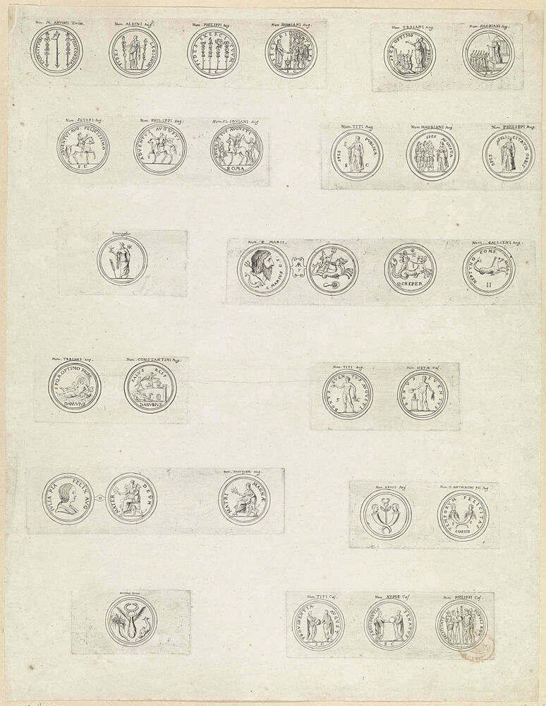 Dertig Romeinse munten met deviezen en emblemen van keizers