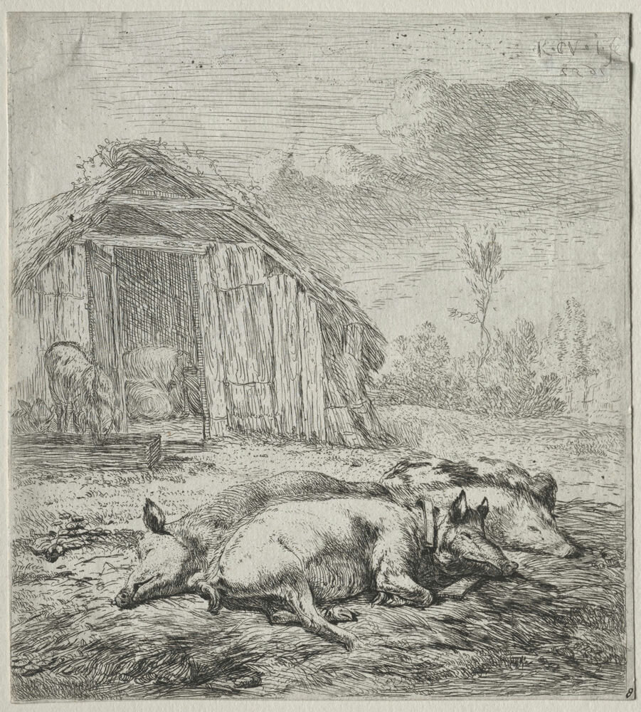 Three Swine Lying in Front of a Sty