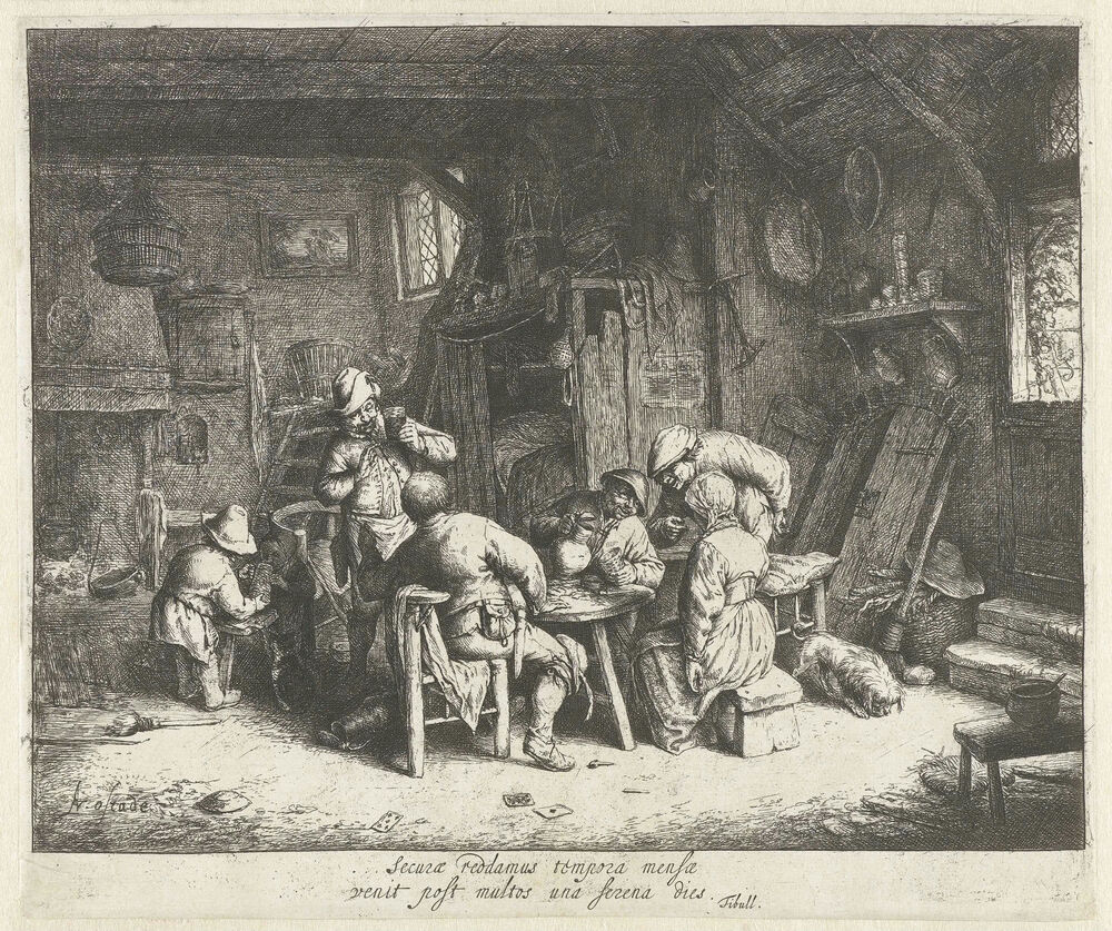 Boeren aan een maaltijd in een herberg