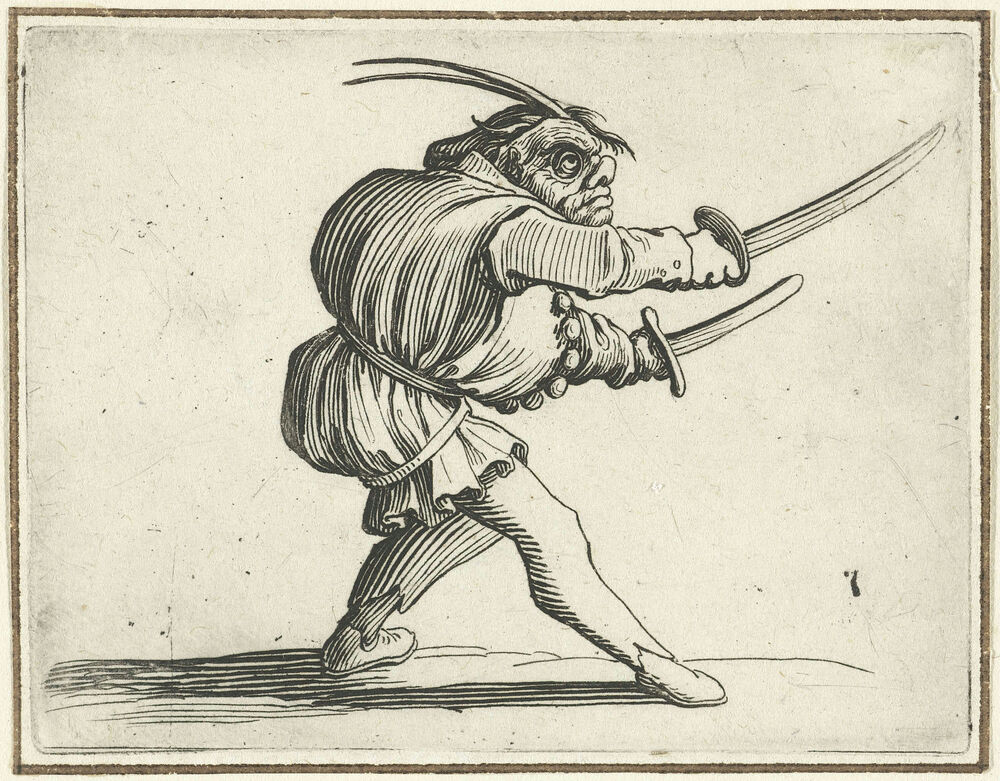 Groteske figuur met twee zwaarden