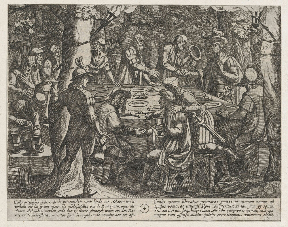 Plate 4: Civilis tells the Dutch Elders that They are Being Treated Like Slaves by the Romans, from The War of the Romans Against the Batavians (Romanorvm et Batavorvm societas)