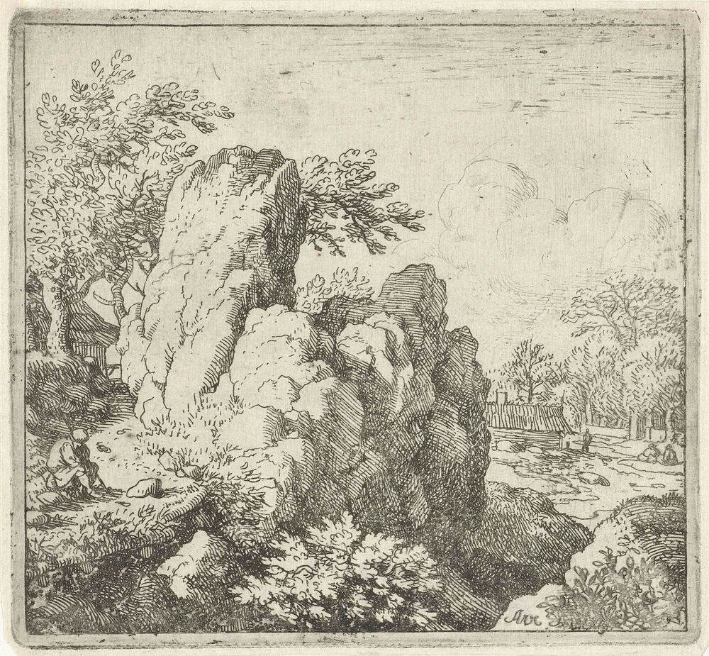 Landschap met grote rots