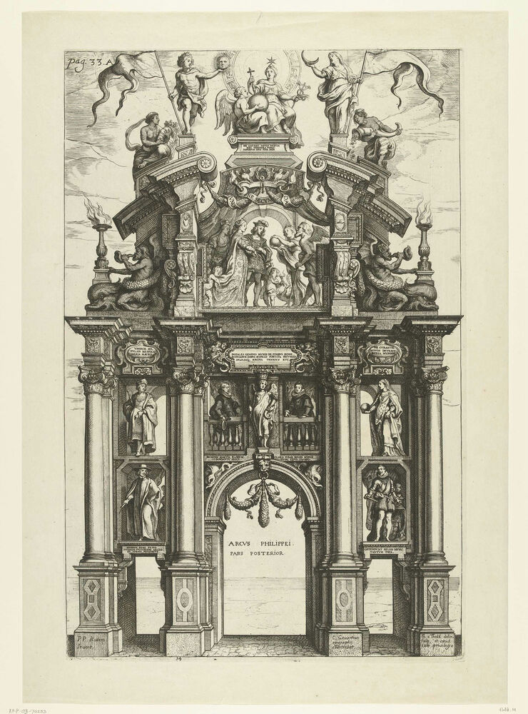 De triomfboog van Filips (achterzijde); intocht van Ferdinand te Antwerpen in 1635 (nr. 14)