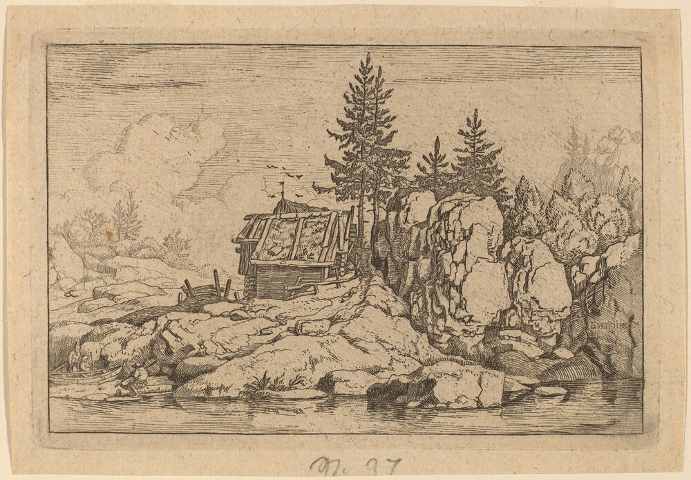 Two Fir Trees near Cottages