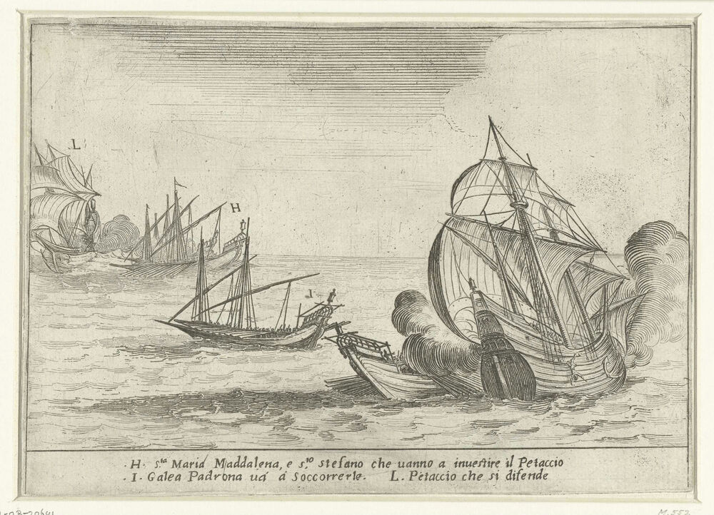Galeien van Cosimo II de' Medici vallen een Turkse petache aan