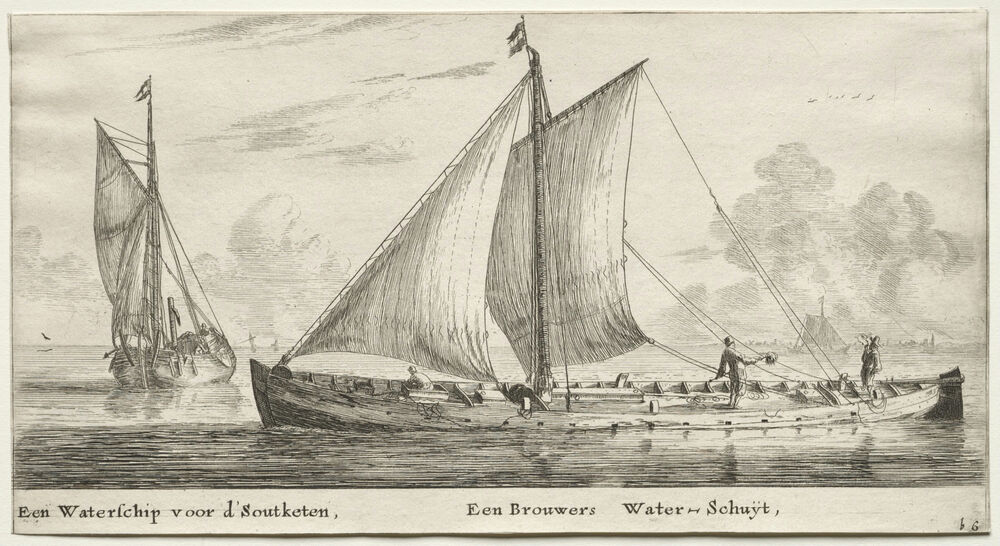 Various Ships and Views of Amsterdam (Verscheÿde Schepen en Gesichten van Amstelredam), Part II: A Water-ship bound for the Soutketen. A Brewer's Water-ship