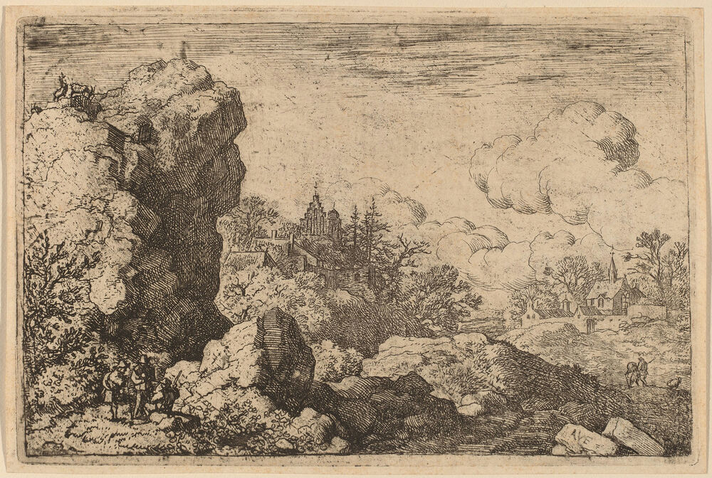 Three Travelers at the Foot of a High Rock