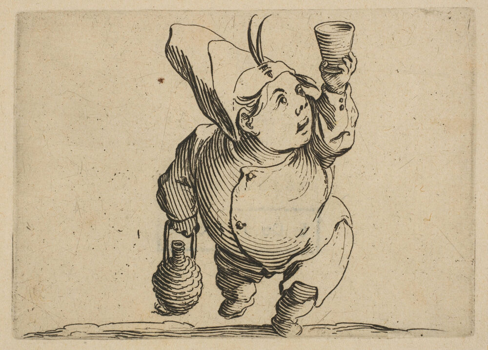 Le Beveur vu de Face (The Drinker Viewed from the Front), from Varie Figure Gobbi, suite appelée aussi Les Bossus, Les Pygmées, Les Nains Grotesques (Various Hunchbacked Figures, The Hunchbacks, The Pygmes, The Grotesque Dwarfs)