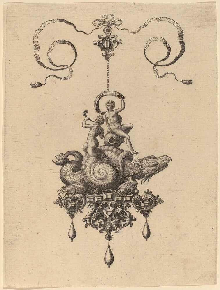 Design for a Pendant with a Sea-Monster in a Shell Carrying a Triton and a Woman with a Sail