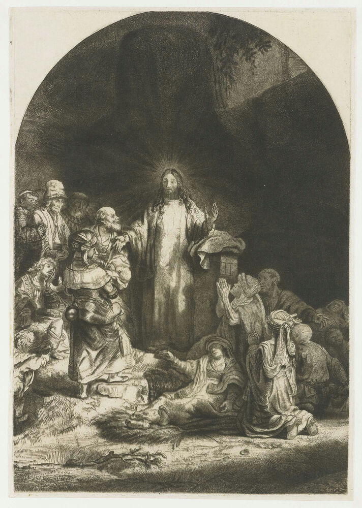 The Hundred Guilder Print: the central piece with Christ preaching, the plate arched