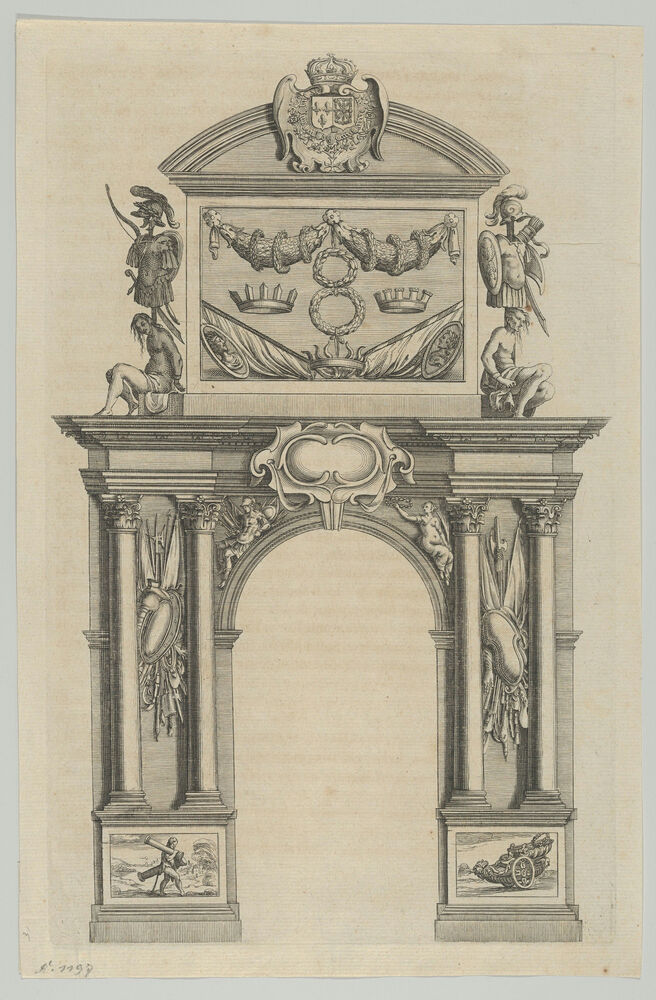 Triumphal arch, from 'Éloges et discours sur la triomphante réception du Roy en sa ville de Paris ...' by Jean-Baptiste de Machault