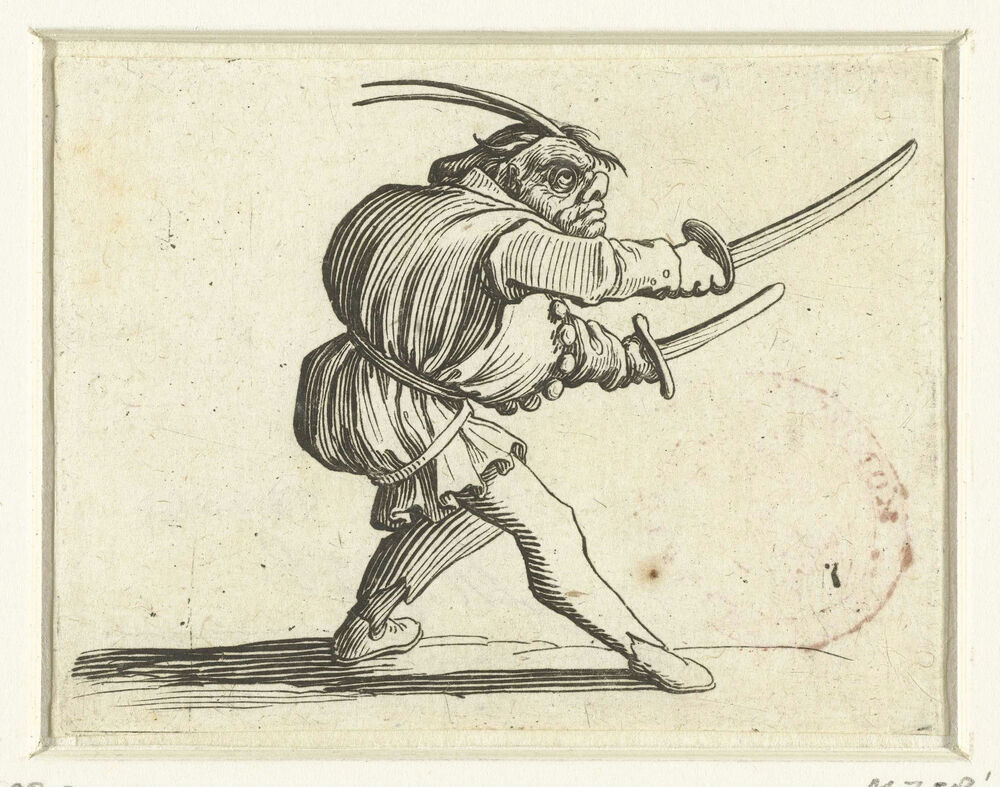 Groteske figuur met twee zwaarden