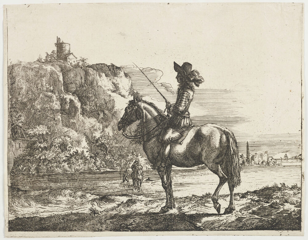 Four landscapes. Plate 4: River landscape with a horseman