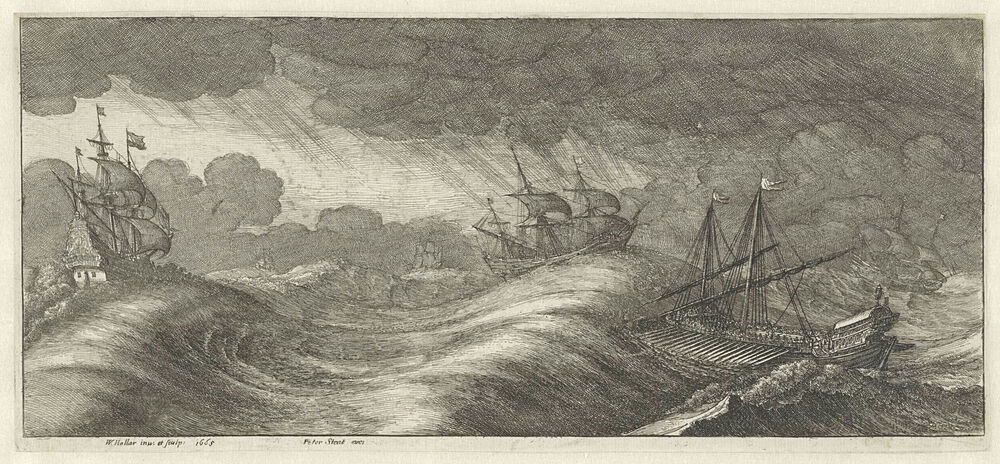 Galei en andere schepen in een zeestorm