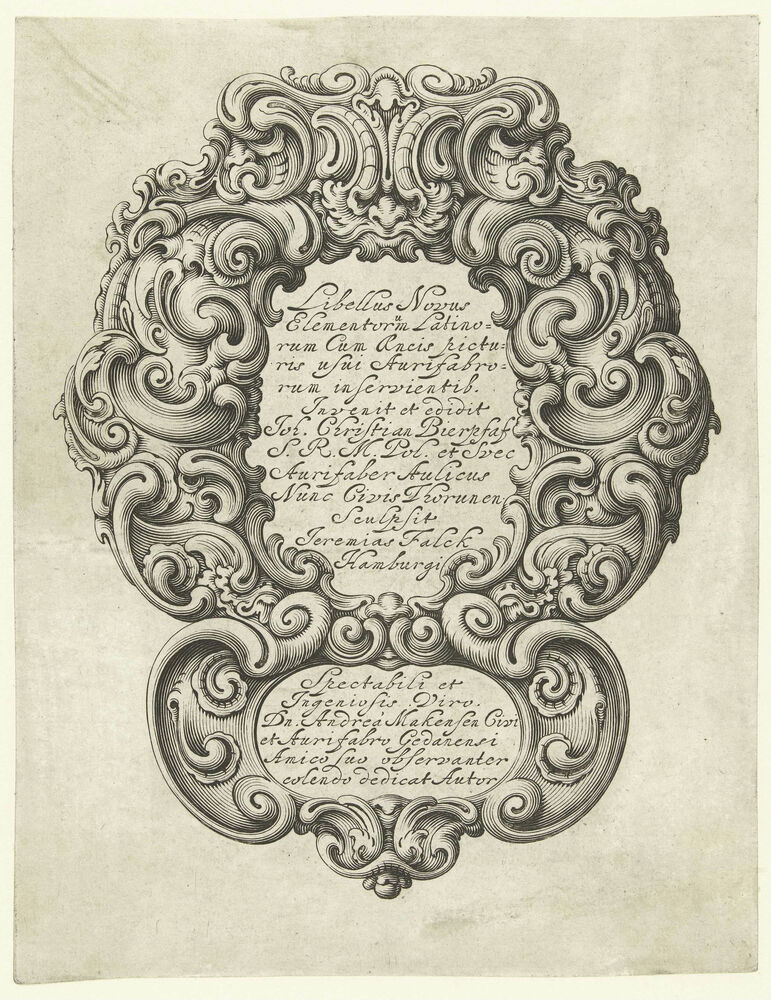 Titelblad: Libellus Novus Elementorum Latinorum Cum AEneis picturis usui Aurifabrorum inservientib