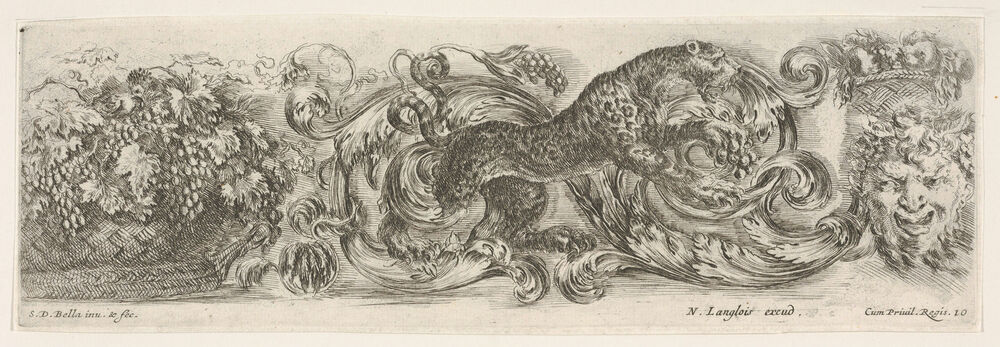 Design for a Frieze with Acanthus Scrolls and a Leopard in the Center, Plate 10 from: 'Decorative friezes and foliage' (Ornamenti di fregi e fogliami)