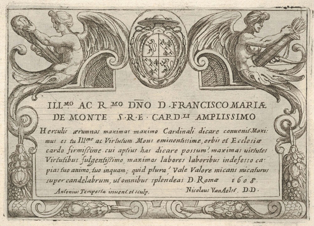 Title plate for the series 'The Labors of Hercules' with the arms of Cardinal Francesco Maria de Monte